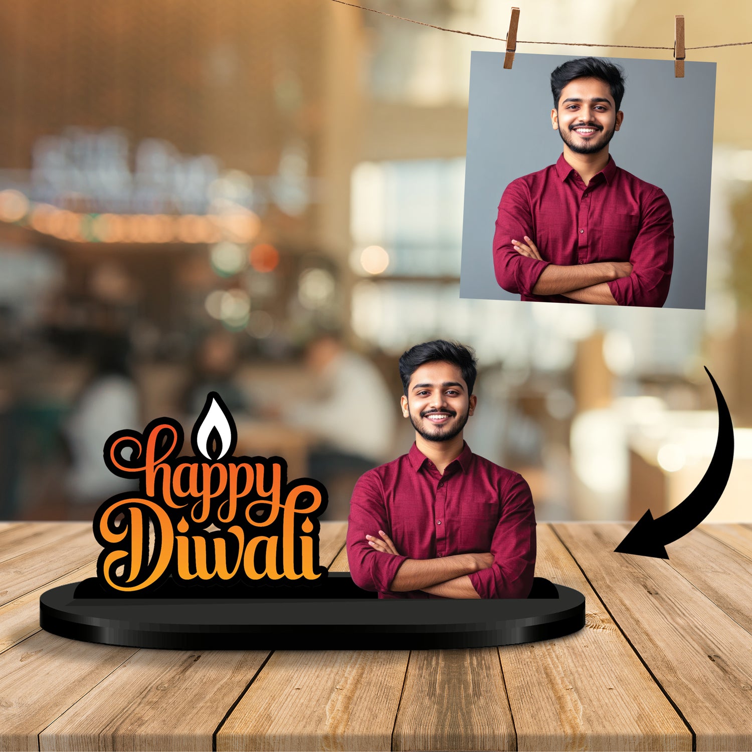 Light up your celebrations with this custom Happy Diwali caricature, featuring a stylish festive design with your own photo. The vibrant “Happy Diwali” text paired with a glowing diya symbol makes it a perfect centerpiece for your décor or a thoughtful gift for loved ones.