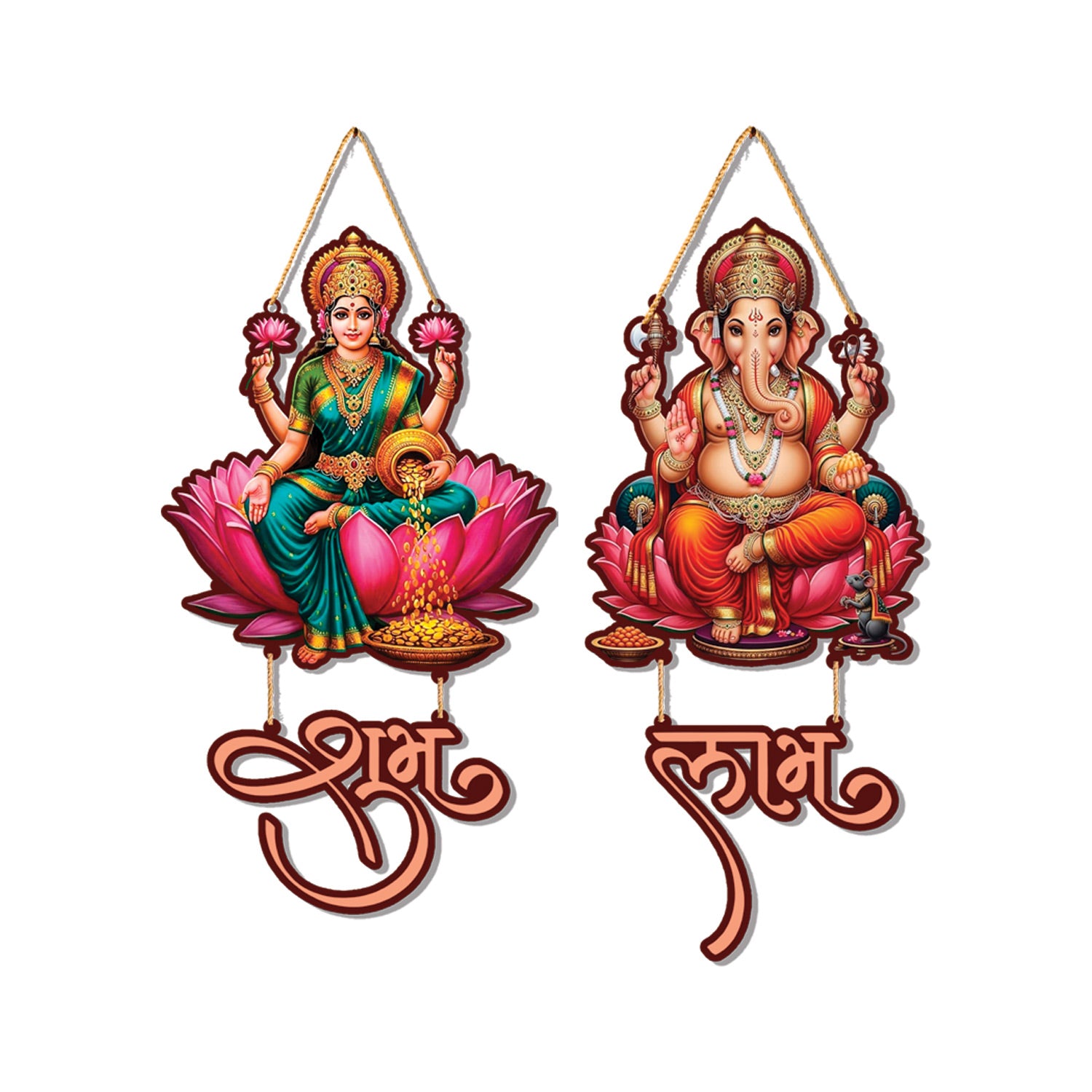Bring positivity, prosperity, and good luck to your home with this beautifully designed Shubh Labh Hanging Wall Décor. Featuring Maa Lakshmi (Goddess of Wealth) and Lord Ganesha (God of Wisdom), this wall hanging is perfect for welcoming divine blessings into your home, office, or shop.