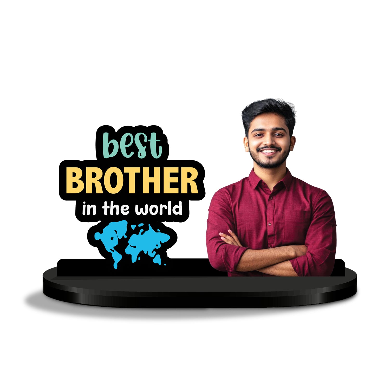 Show your brother just how much he means to you with this heart-touching “Best Brother in the World” personalized caricature standee. Featuring your favorite photo of him alongside a vibrant world map graphic and bold typography, this keepsake is a heartfelt tribute to the one who’s been your protector, supporter, and friend through every phase of life.