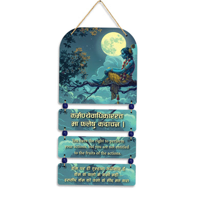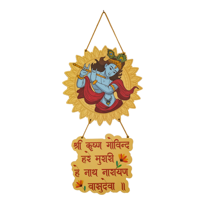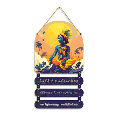 Elevate your space with this beautiful Krishna wall hanging, adorned with the sacred shloka, "Dine Dine Navaṃ Navaṃ Namāmi Nandasaṃbhavam." This exquisite piece features a stunning depiction of Lord Krishna, capturing his divine grace and charm. The shloka, which translates to "Every day, anew, I bow down to the son of Nanda," is intricately inscribed, reflecting the eternal devotion and reverence for Krishna. Crafted with attention to detail, this wall hanging adds a touch of spirituality and elegance to any room, serving as a constant reminder of divine blessings and the timeless essence of Lord Krishna.