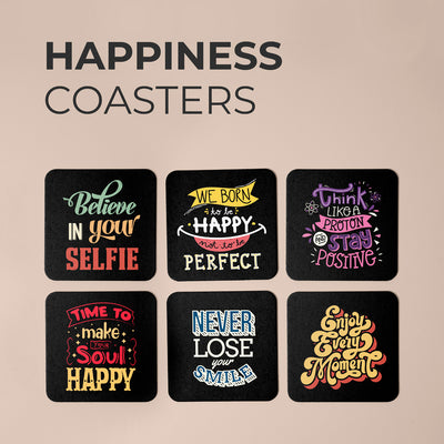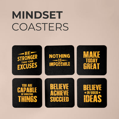 "Add a touch of inspiration to your home decor with these coasters! This set of 6 square, water-resistant coasters features uplifting quotes that will brighten your day and motivate you with every sip.